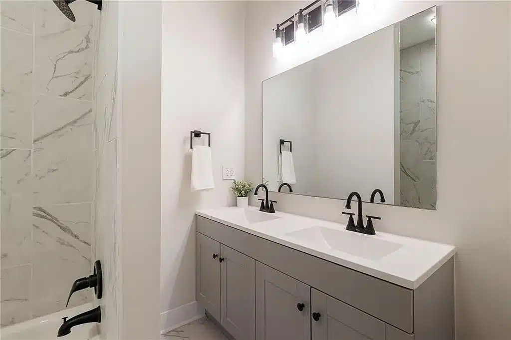 - Modern bathrooms with new vanities, faucets, flooring, and ceramic tile surrounds